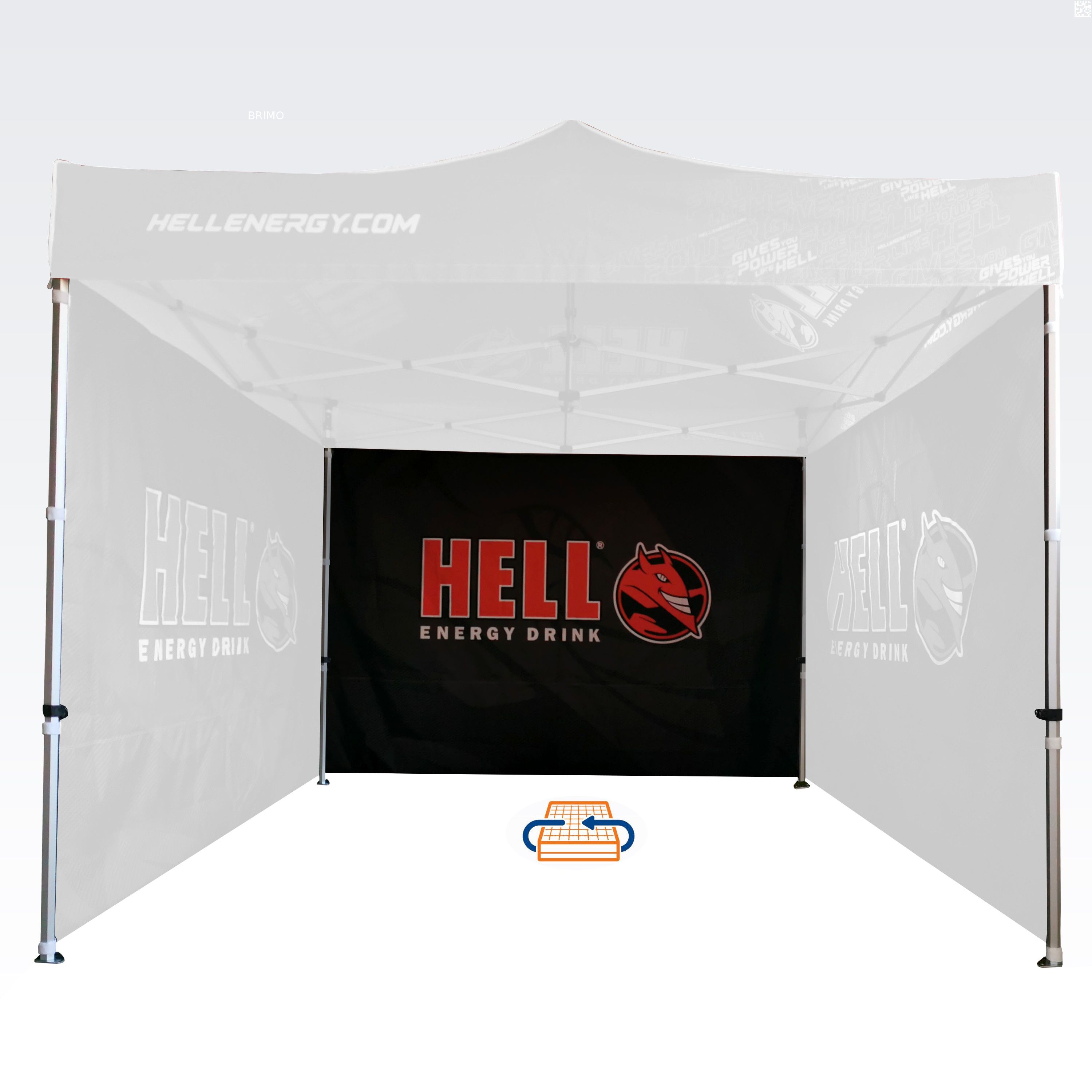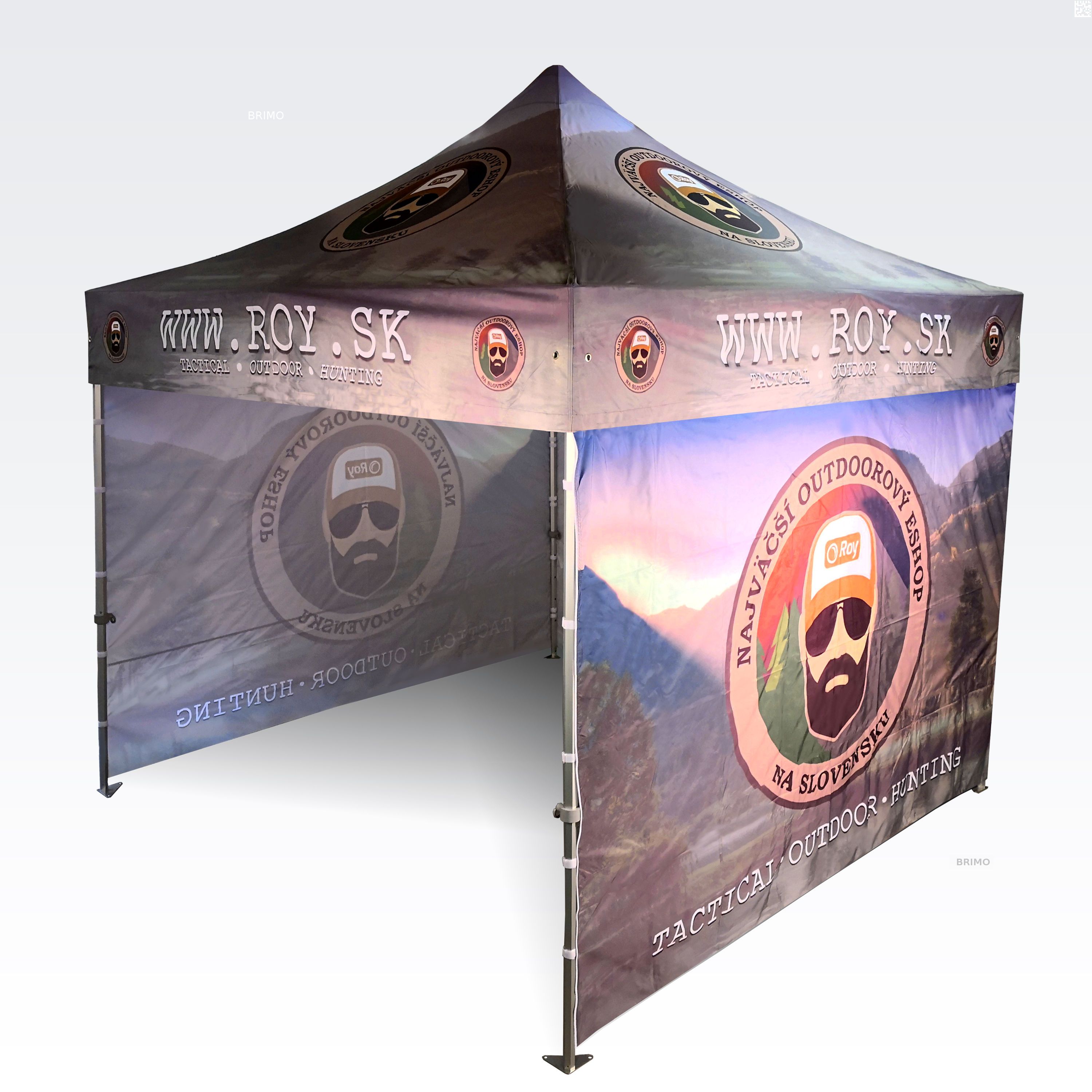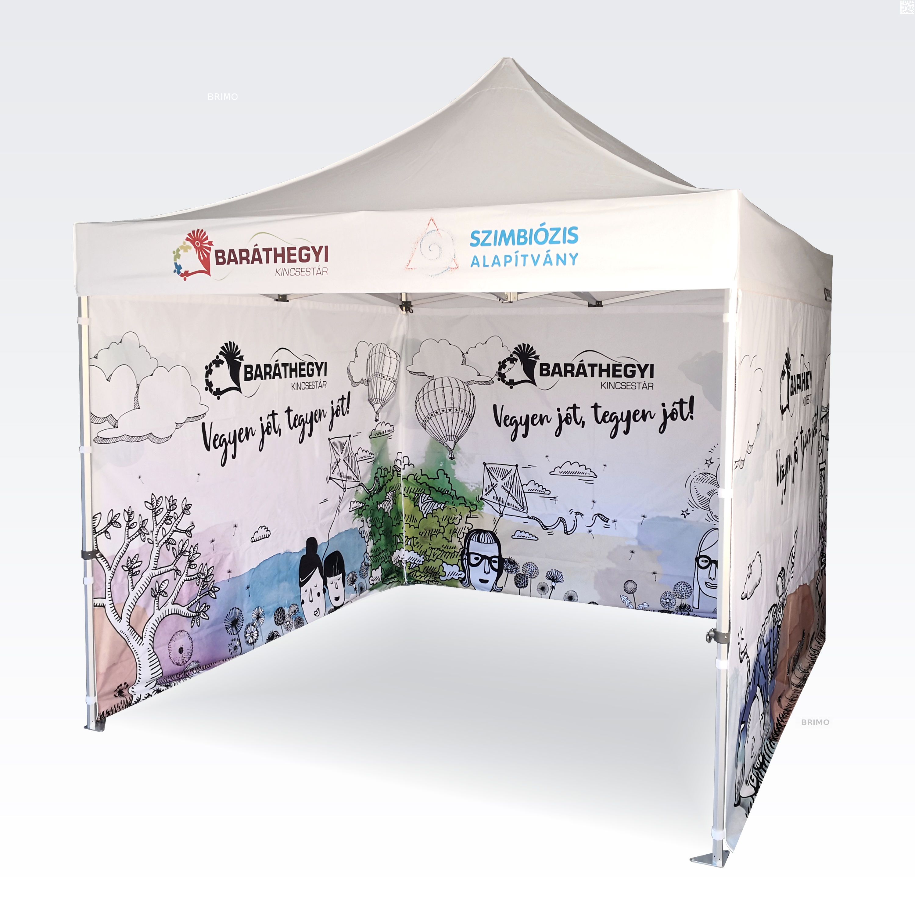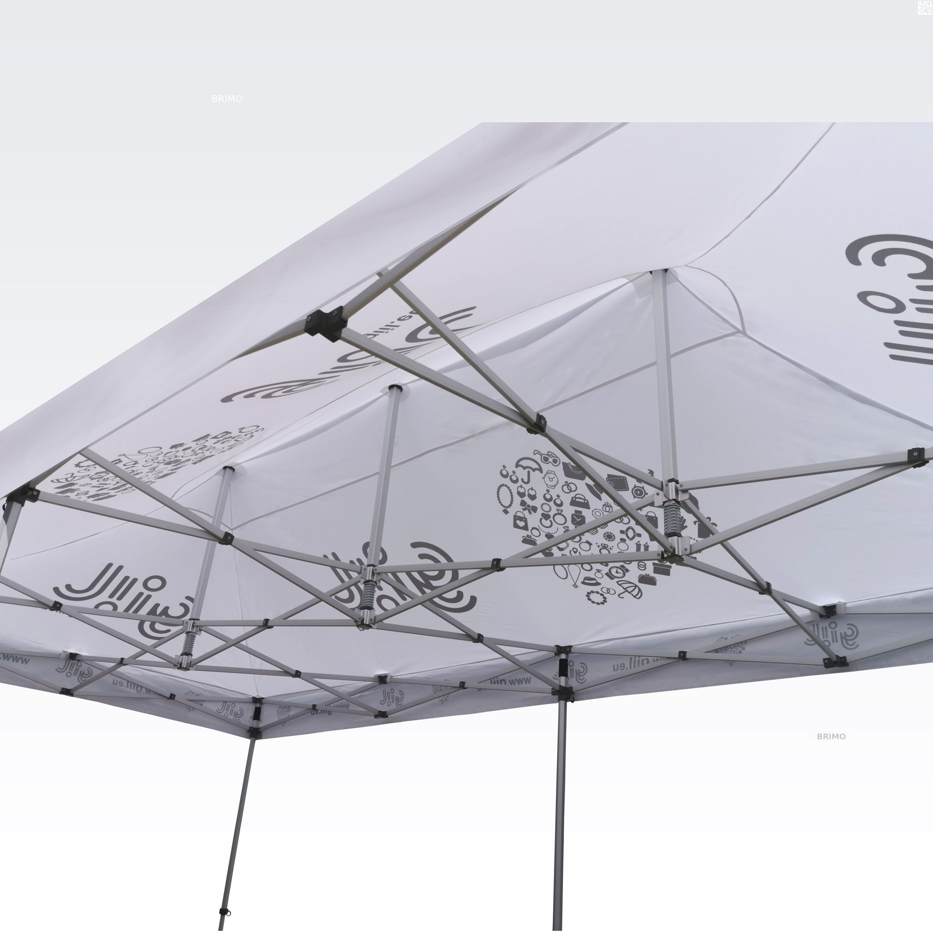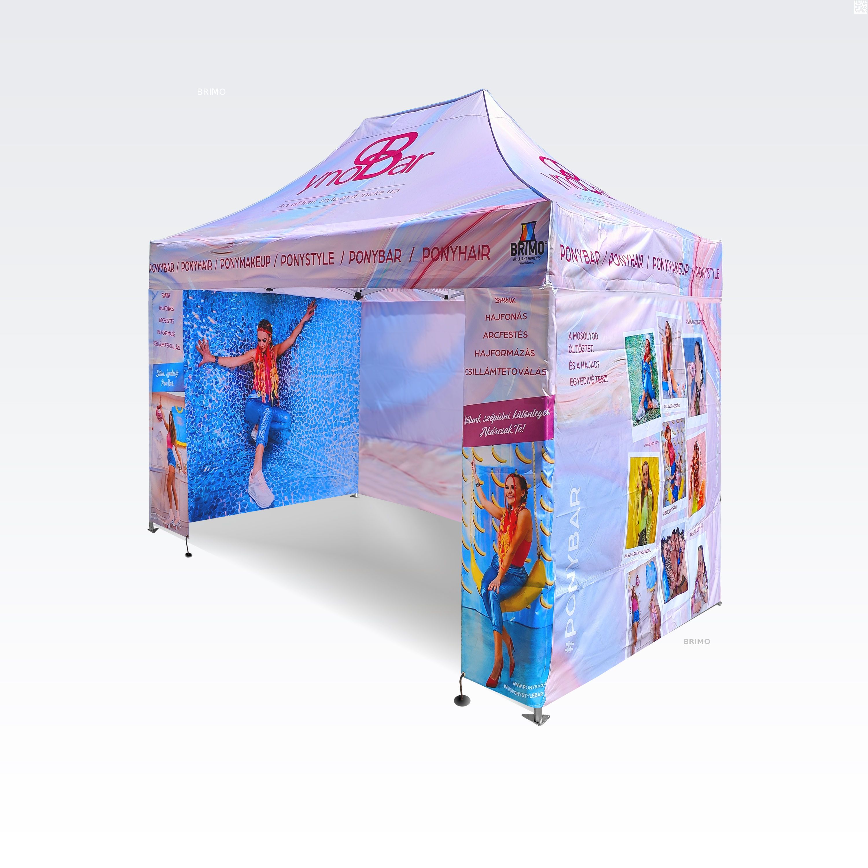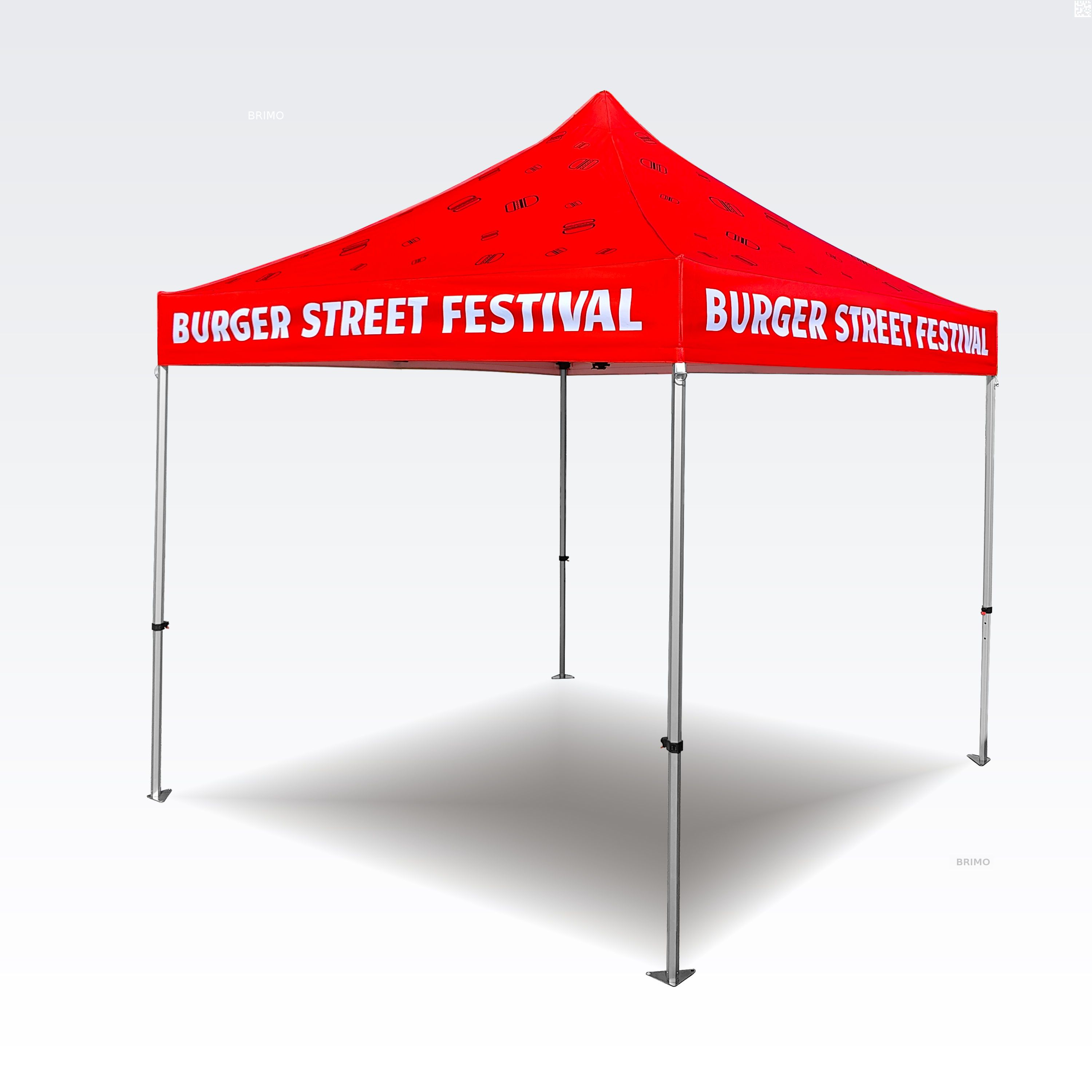 Reklāmas teltis ar digitālo sublimācijas druku. Apdruka rodas ķīmiskā procesa laikā, tinte augstas temperatūras ietekmē iekļūst tieši auduma struktūrā. Logotips, uzraksts, jebkura veida grafika telts iekšpusē vai ārpusē, pēc klienta vēlmēm.