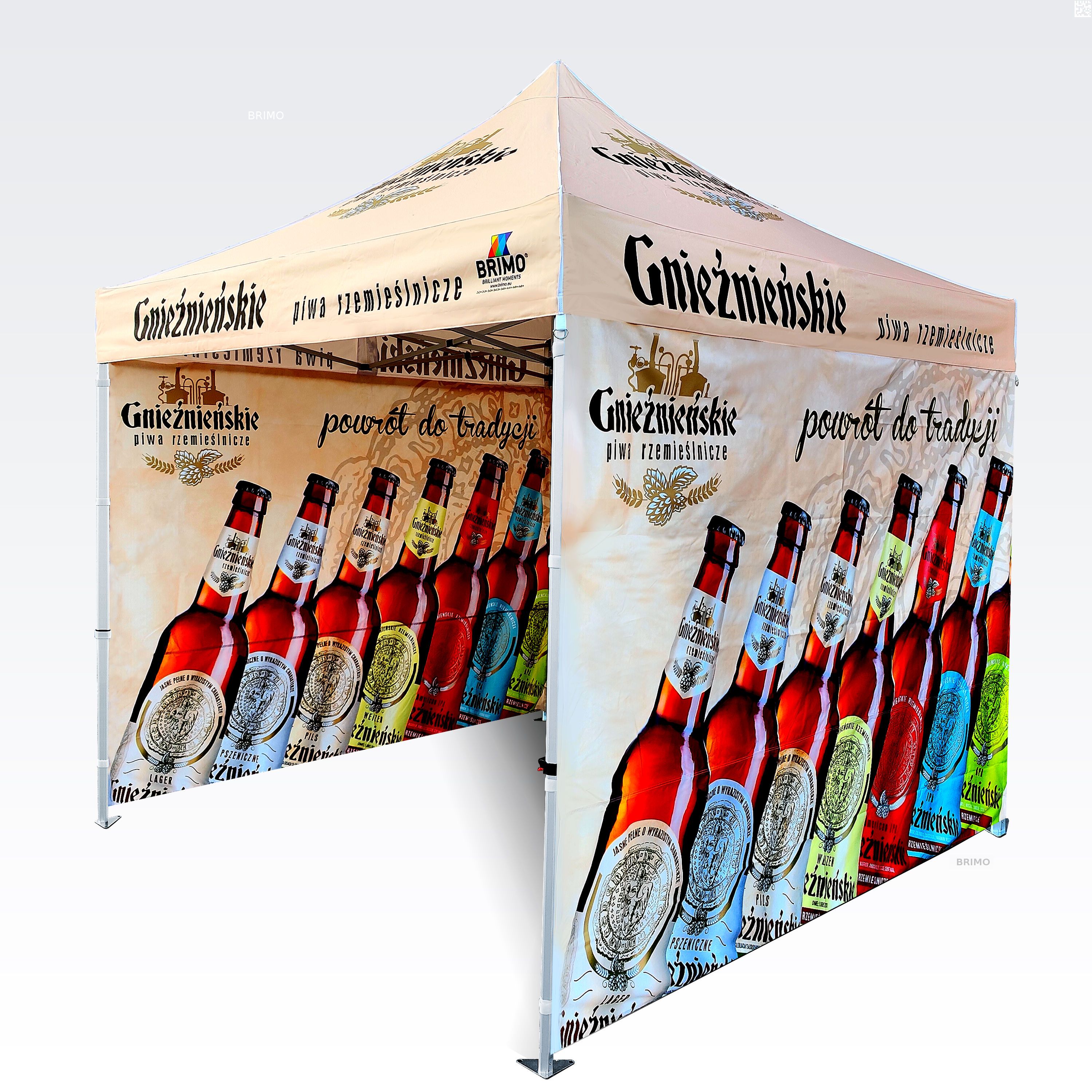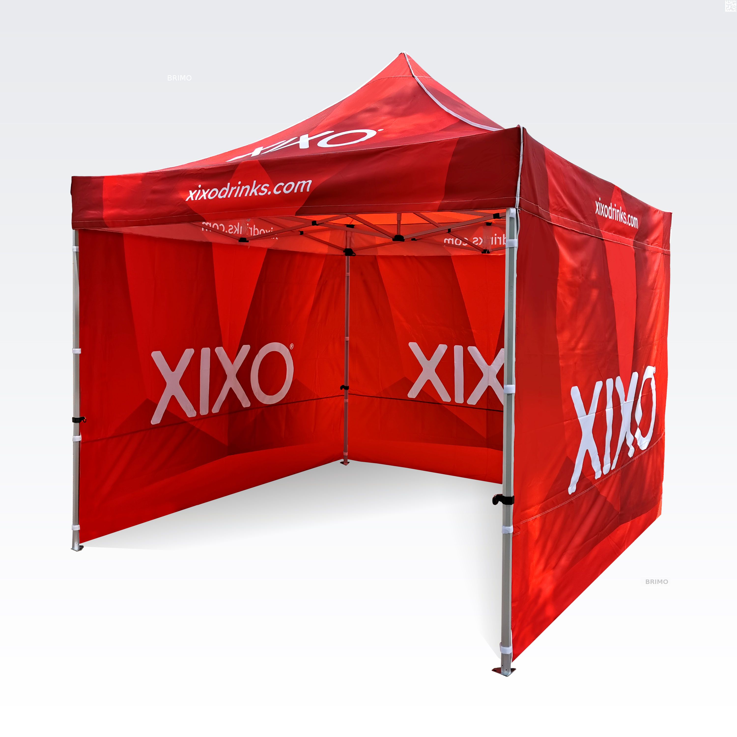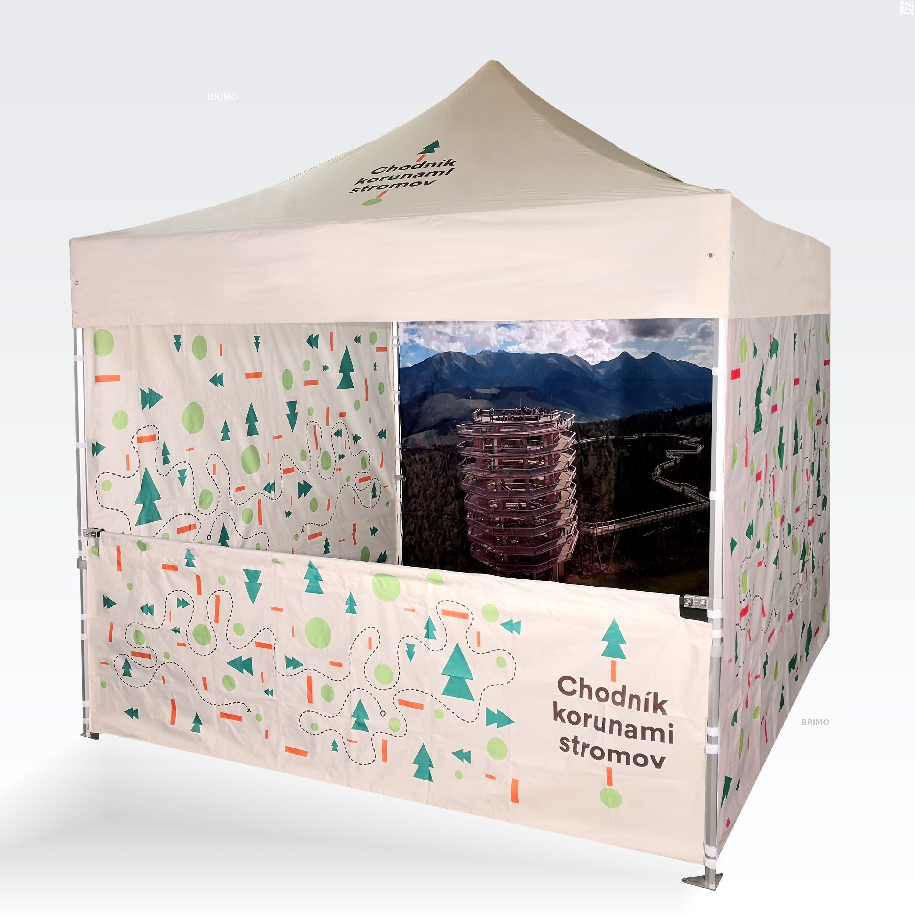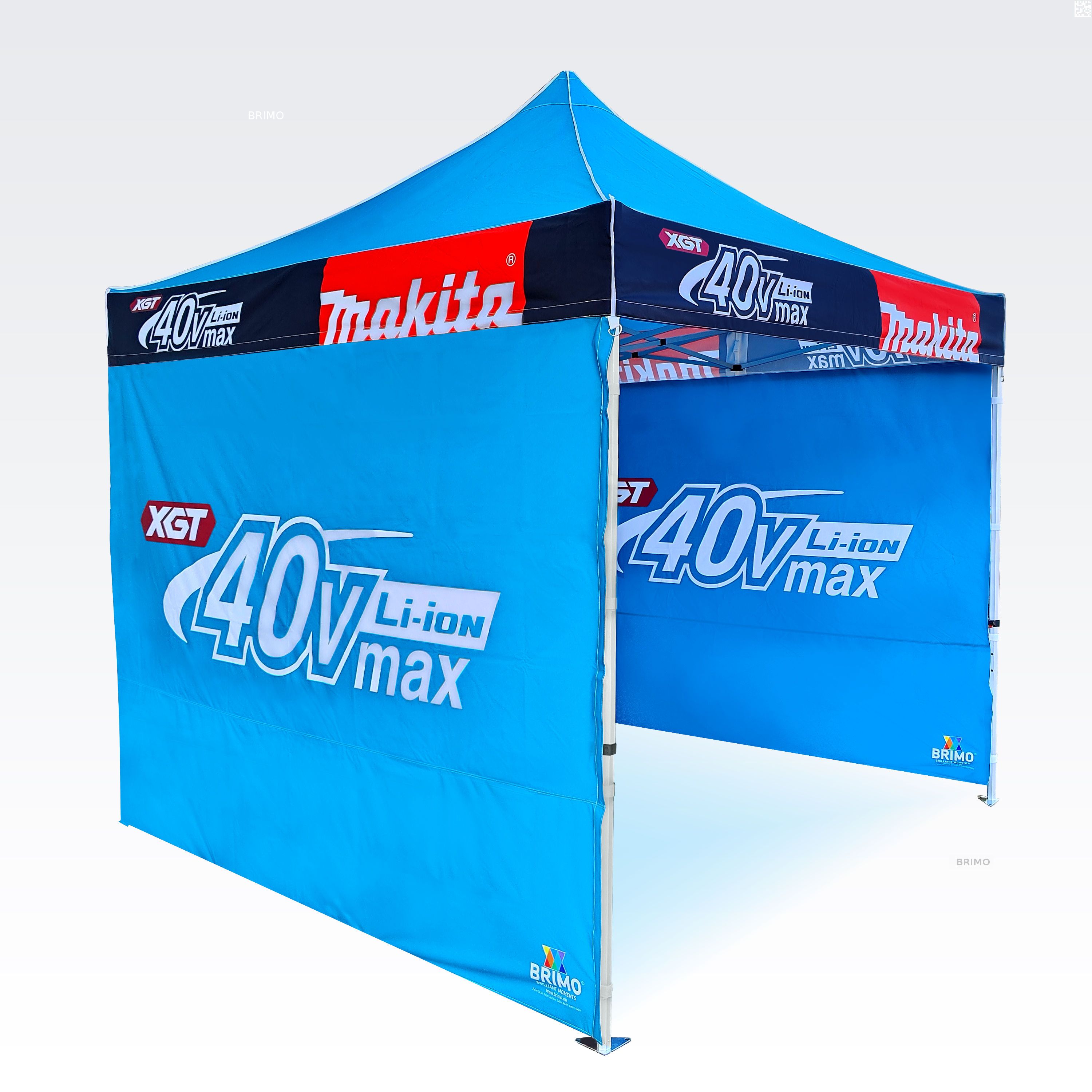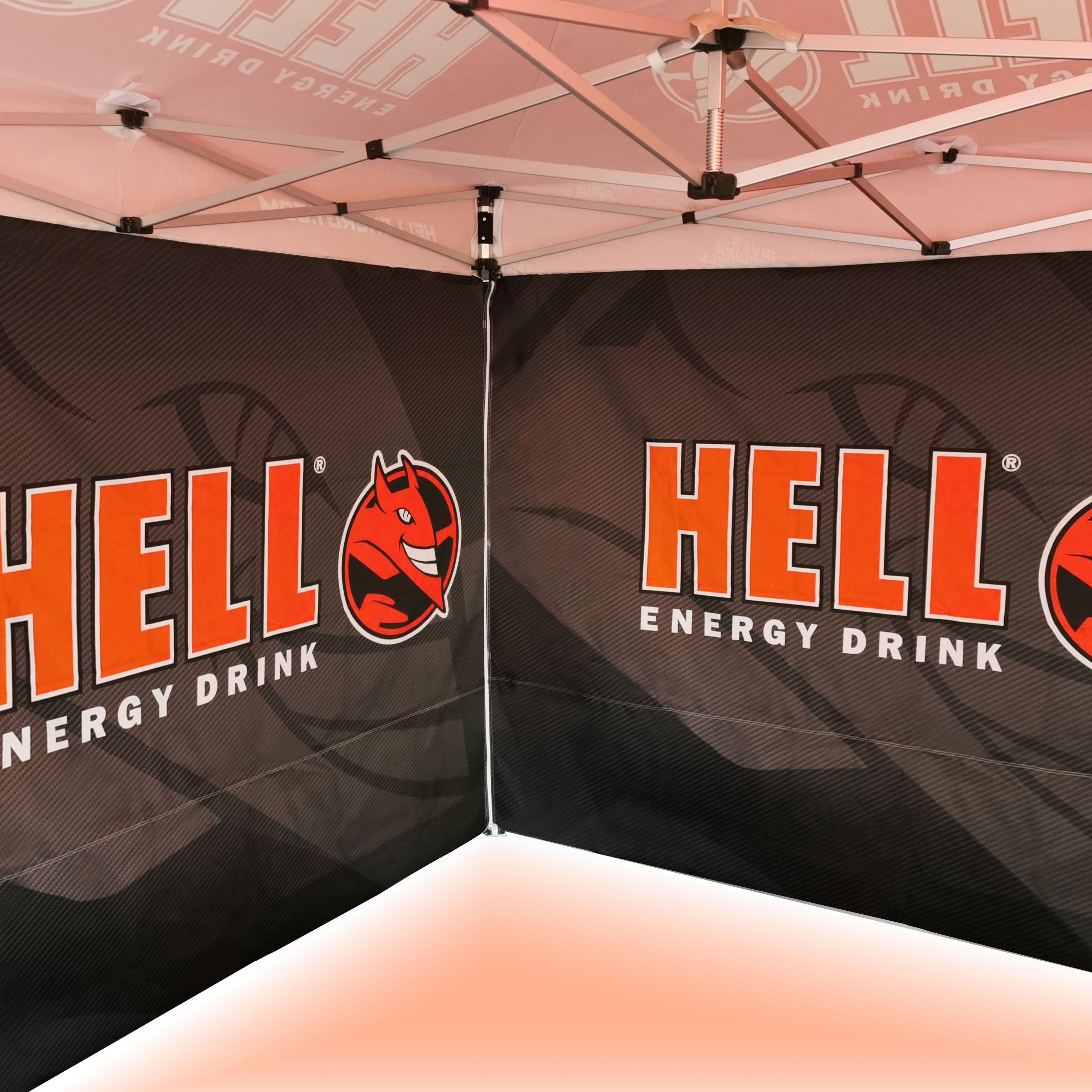 Reklāmas teltis ar digitālo sublimācijas druku. Apdruka rodas ķīmiskā procesa laikā, tinte augstas temperatūras ietekmē iekļūst tieši auduma struktūrā. Logotips, uzraksts, jebkura veida grafika telts iekšpusē vai ārpusē, pēc klienta vēlmēm.