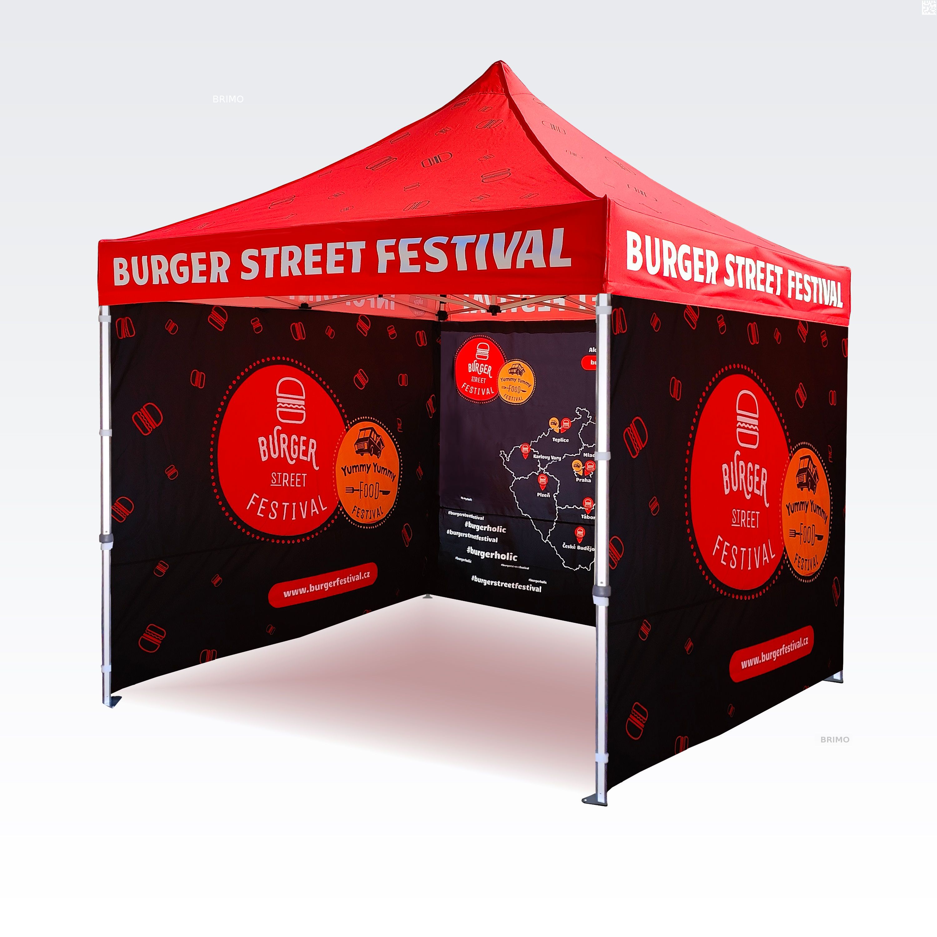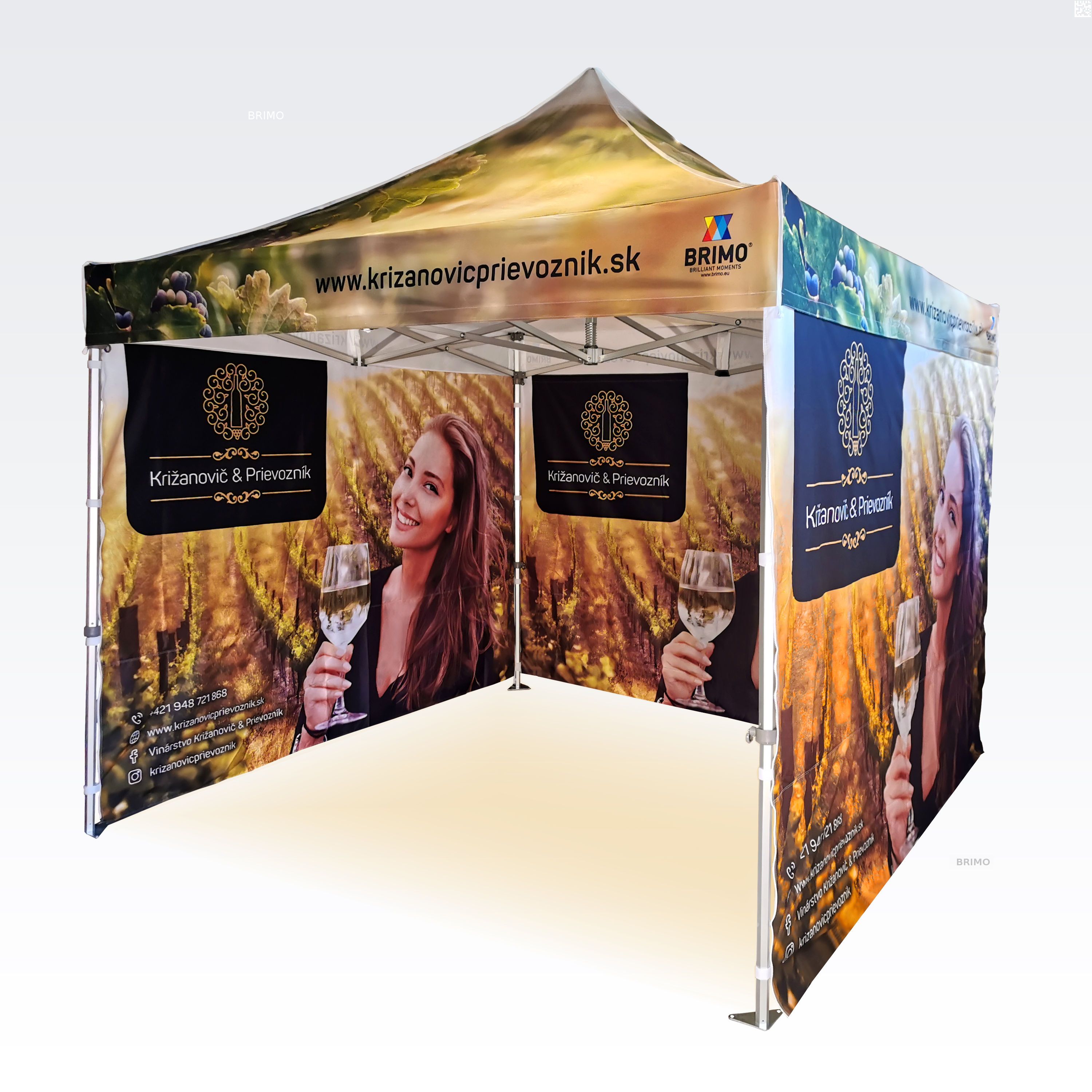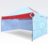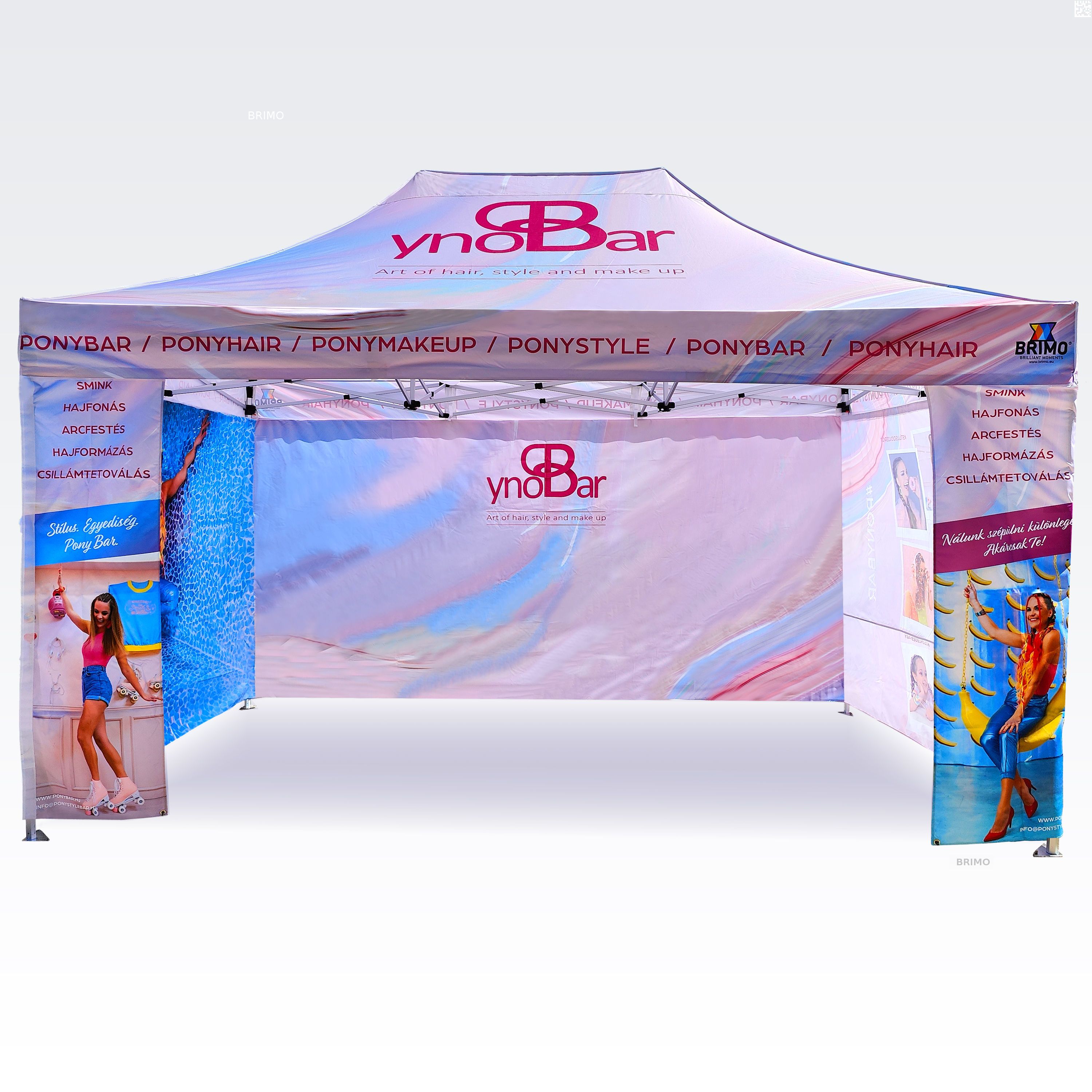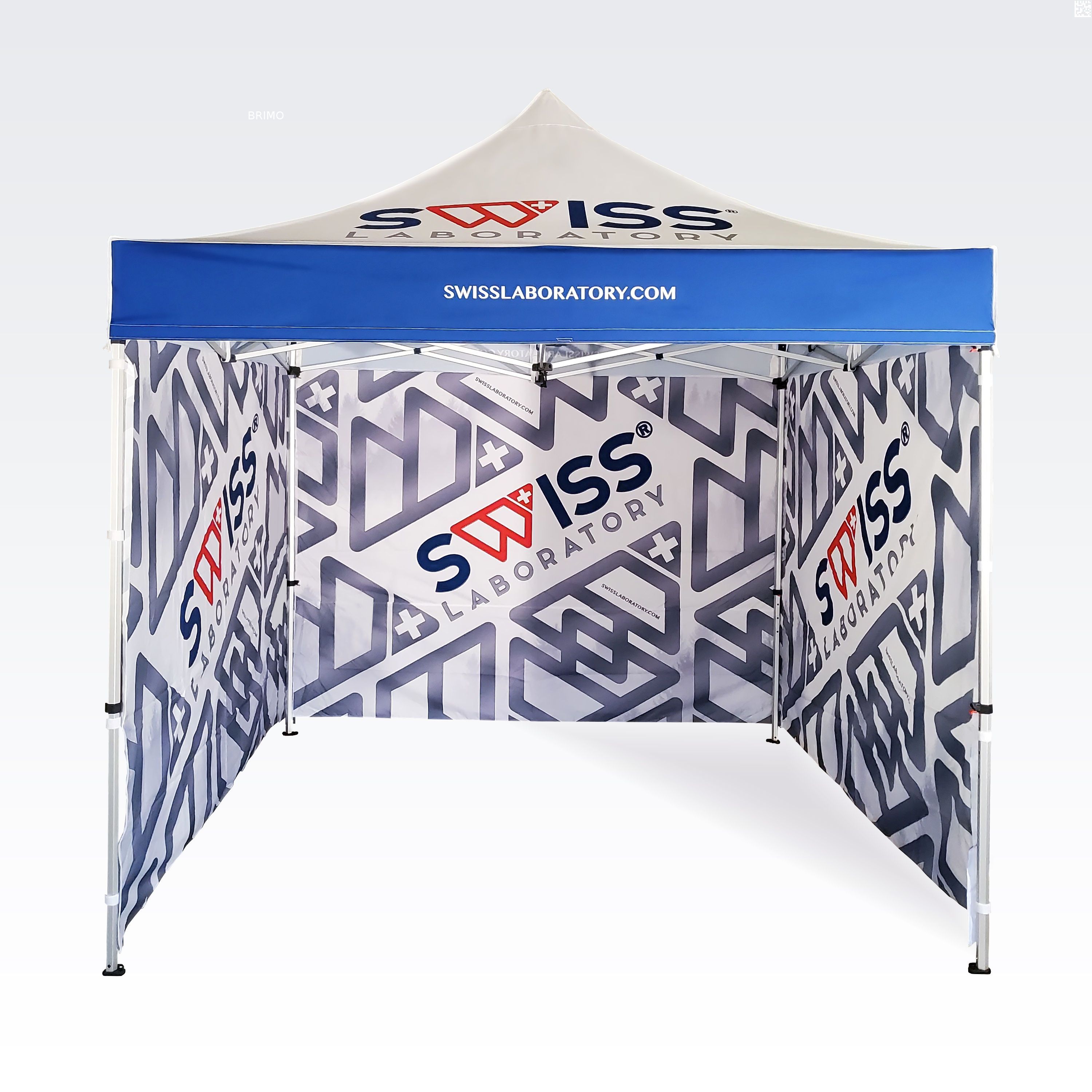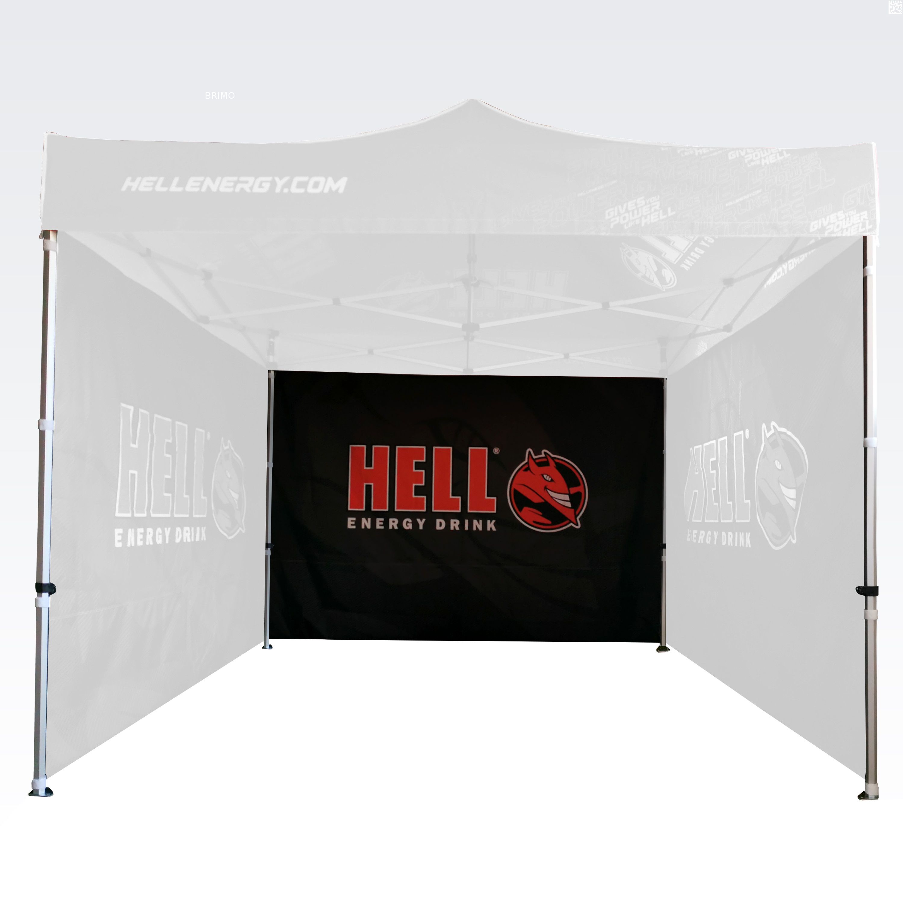 Reklāmas teltis ar digitālo sublimācijas druku. Apdruka rodas ķīmiskā procesa laikā, tinte augstas temperatūras ietekmē iekļūst tieši auduma struktūrā. Logotips, uzraksts, jebkura veida grafika telts iekšpusē vai ārpusē, pēc klienta vēlmēm.